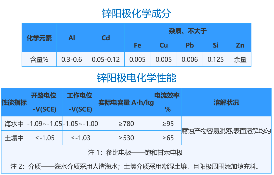 1.锌合金牺牲阳极自溶性小,电流效率高,阳极发生电流的自调节性能好。